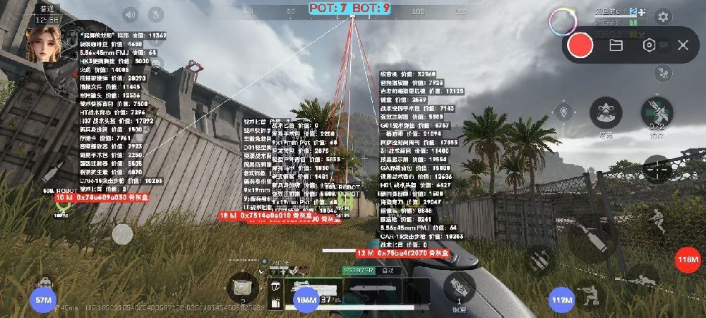功能介绍: 自动瞄准-透视-带过机器-方框透视-血量-显示范围-人机显示-全面战